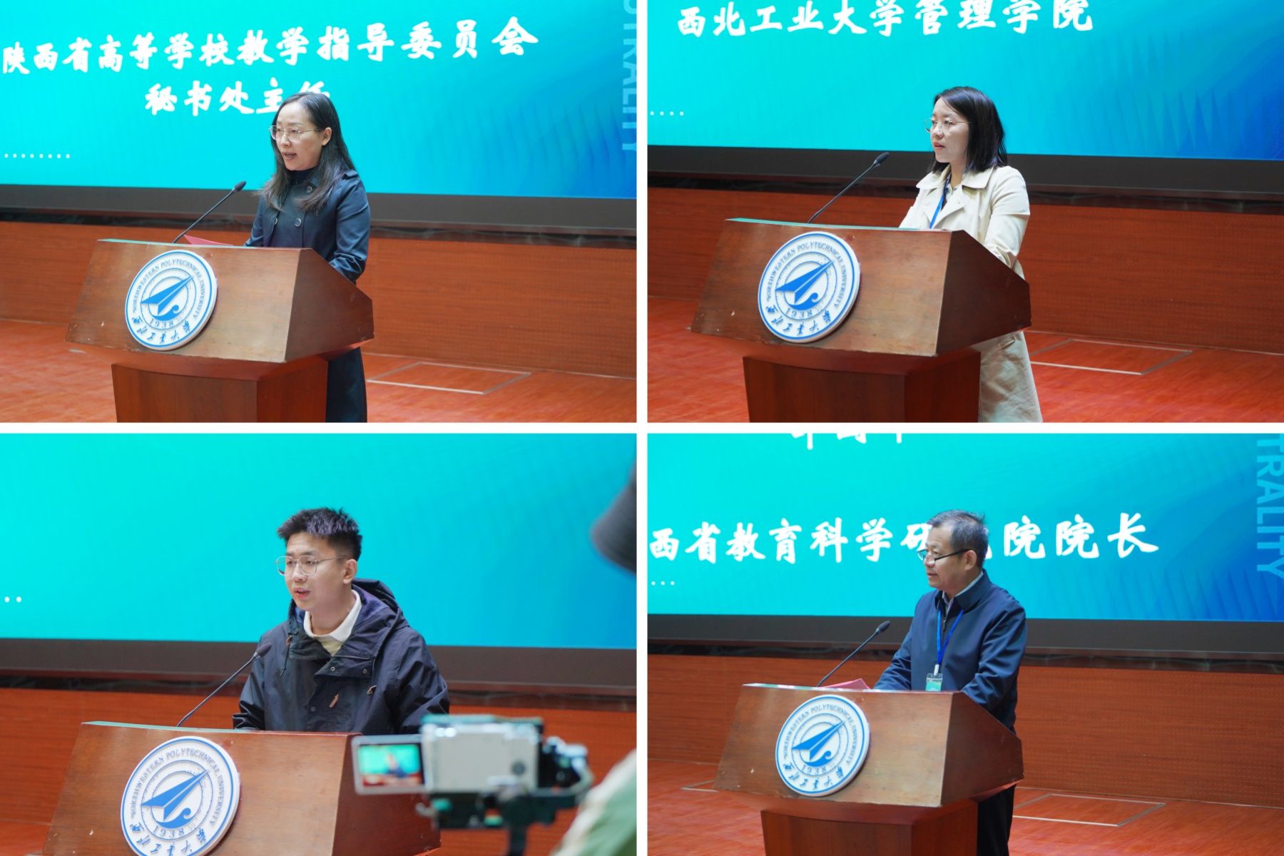 副院长贾明教授主持开幕式。西北工业大学教务部副部长张学良代表学校对各位专家学者以及参赛同学表示热烈的欢迎,并对本次大赛提出了殷切期望。陕西省高等学校教学指导委员会秘书长王贵荣,陕西省教育科学研究院副院长惠均芳等领导作为嘉宾为本次大赛致辞。裁判长金美容老师、教师代表黄珍老师、参赛学生代表廖家豪同学依次上台宣誓。陕西省教育科学研究院院长邵国希宣布本次大赛正式开幕。