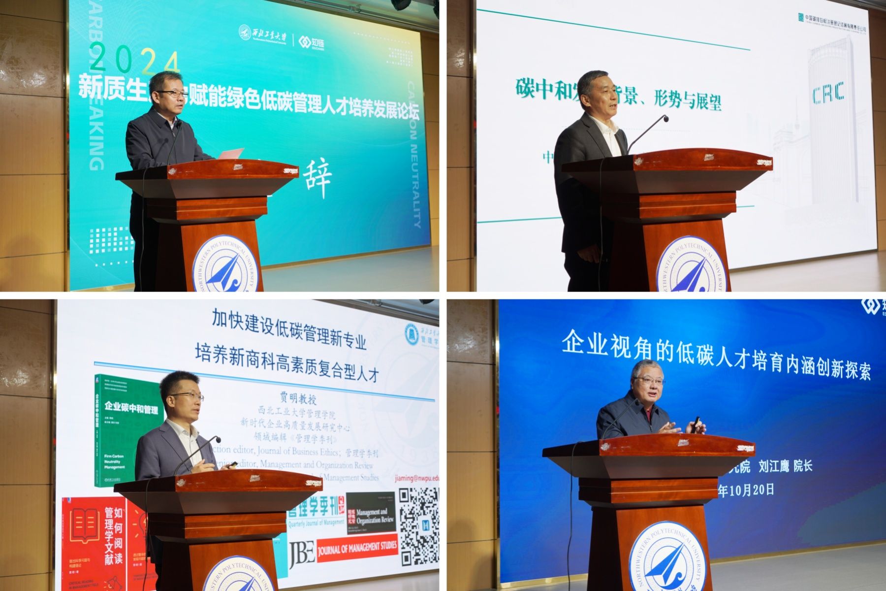 副院长贾明阐述了以“建低碳管理专业,育绿色低碳人才”的办学理念;北京知链科技有限公司研究院院长刘江鹰分享了题为“企业视角的低碳人才培育内涵创新探索”的思考。论坛在与会嘉宾和参会者的合影留念中圆满结束。