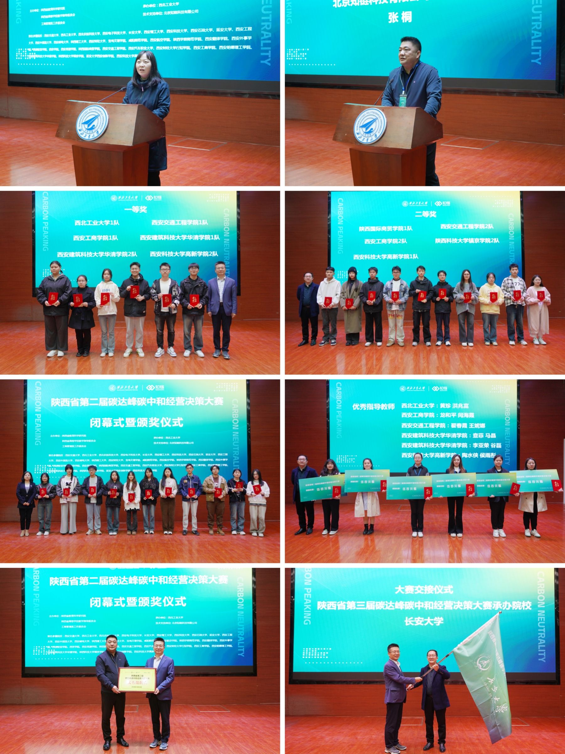 副院长贾明教授为大赛闭幕式致辞,并进行了大赛交接仪式。至此,陕西省第二届碳达峰碳中和经营决策大赛圆满落下帷幕。