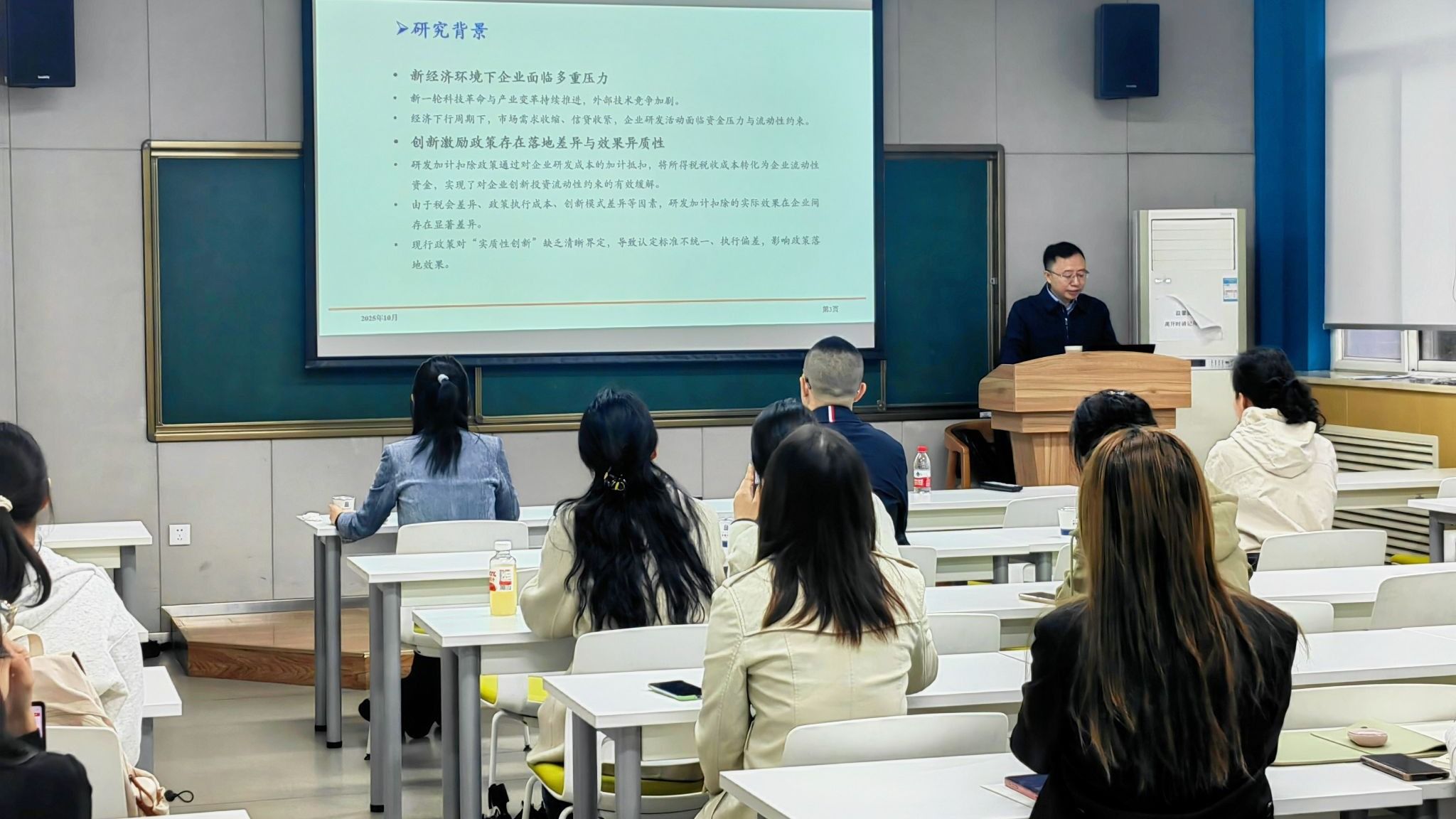 邀请,对外经济贸易大学祝继高教授在长安校区学院楼214报告厅与学院师生展开学术交流,作题为“创新成本分担的溢出效应:研发费用加计扣除政策对劳动收入份额的影响研究”的学术讲座。本次讲座由澳门金沙娱乐城