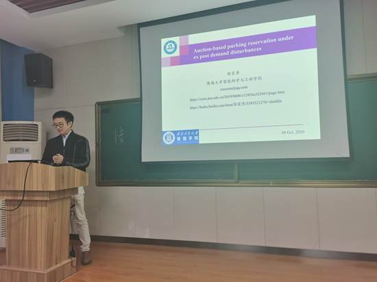 之邀,于我院报告厅作“Auction-based parking reservation under ex-post demand disturbance”主题学术报告会。报告会由澳门金沙娱乐城