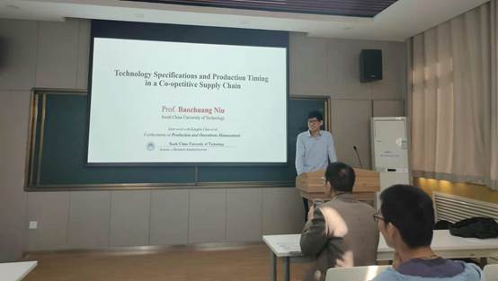 的邀请,2020年11月19日下午三点,华南理工大学教授牛保庄来我院作了题为“ Technology Specifications and Production Timing in a Co-Opetitive Supply Chain (竞争供应链中的技术依存和生产时序决策研究) ”的学术报告。报告会由车阿大教授主持,学院师生共60余人参加了报告会。